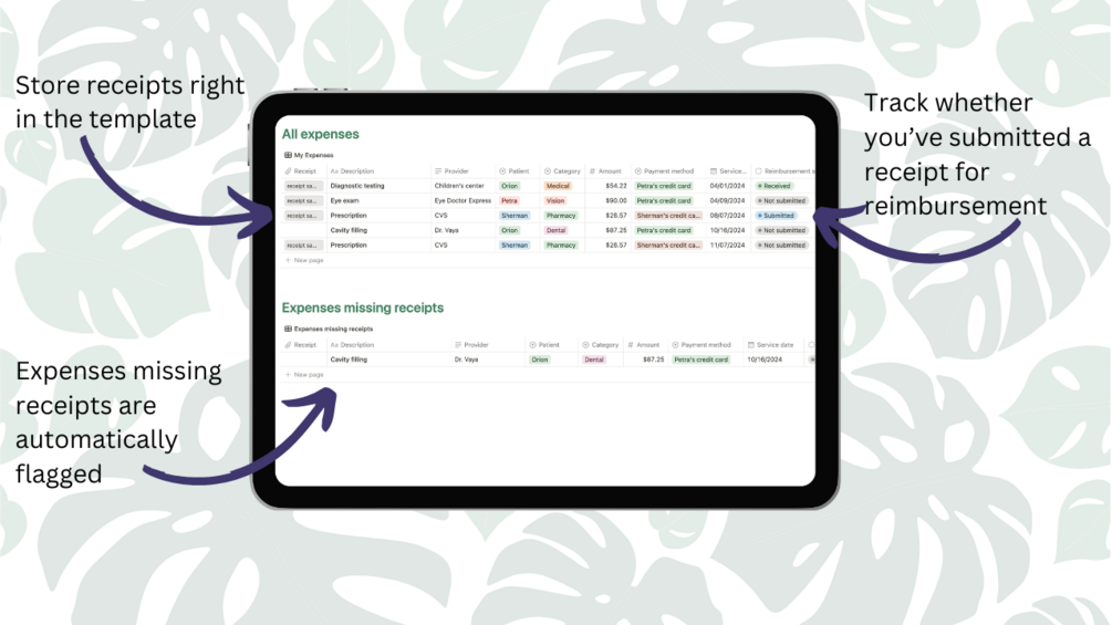 HSA Receipt Tracker Notion template